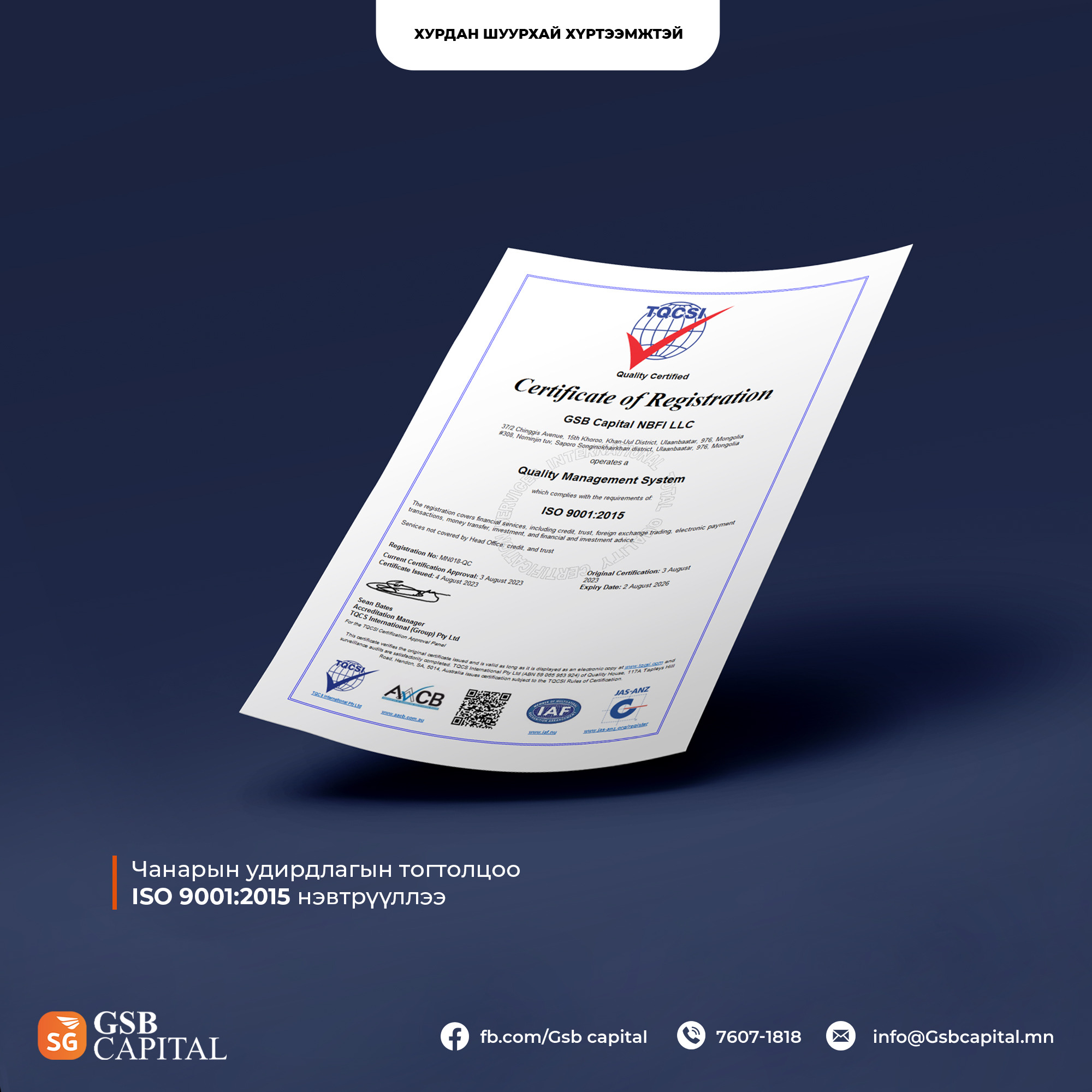 Бид харилцагчиддаа хэрэгцээт санхүүгийн үйлчилгээг энгийн, нууцлалыг хангасан, хялбар байдлаар найдвартай хүргэдэг, зохистой удирдлагатай санхүүгийн байгууллага байна.