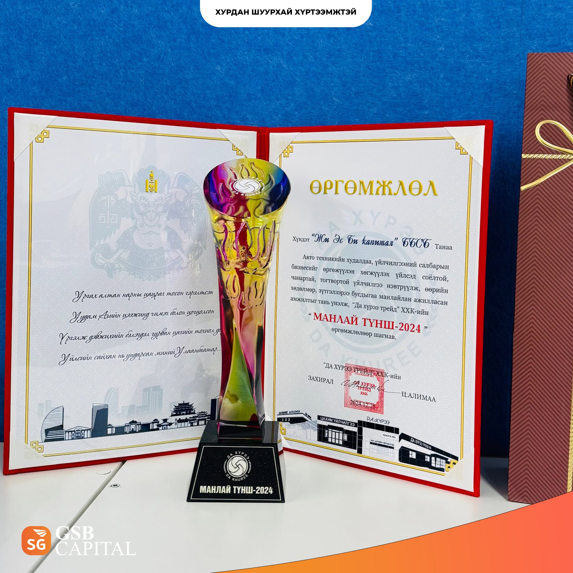 Бидний хувьд 2024 онд авто техник худалдаа, үйлчилгээний салбарын бизнесийг өргөжүүлэн хөгжүүлэх, харилцагчдад төвлөрсөн тогтвортой үйлчилгээг үзүүлэхийг эрмэлзэн ажилласан ба энэхүү шагналыг авахад бидэнд итгэл хүлээлгэсэн харилцагч, үйлчлүүлэгч та бүхэндээ баярлалаа.